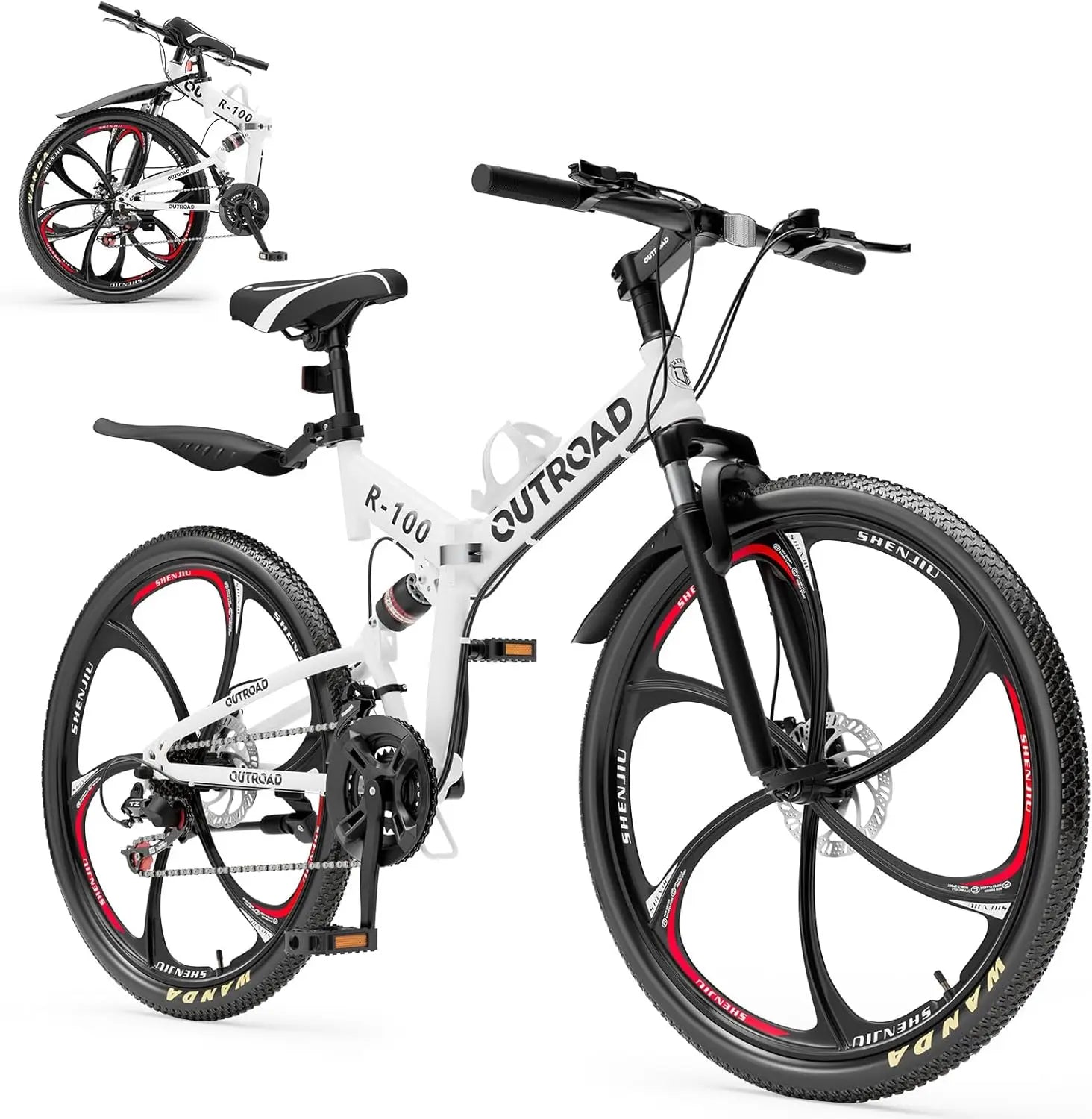 26 inch Folding Mountain Bike, Carbon Steel Frame and 21 Speed, Double Disc Brake and Dual Suspension Folding Bike
