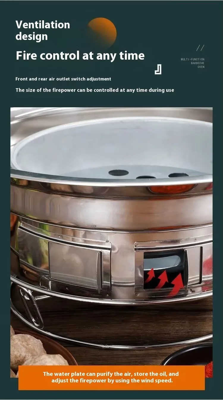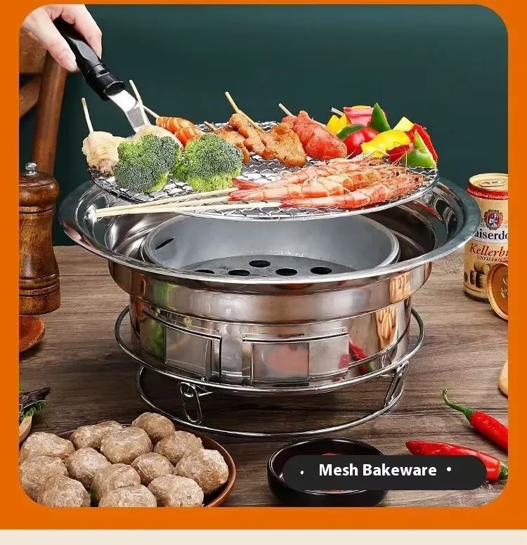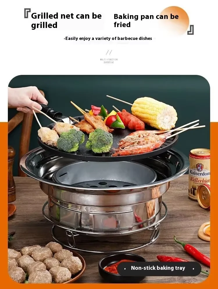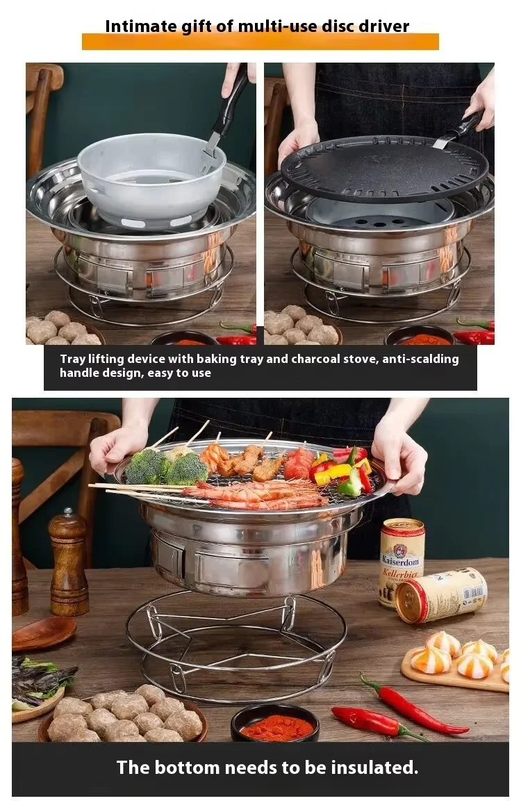 Japanese Korean Stainless Steel Hibachi BBQ Picnic Table Round Grill Outdoor & Indoor Barbecue Stove Cooker Portable