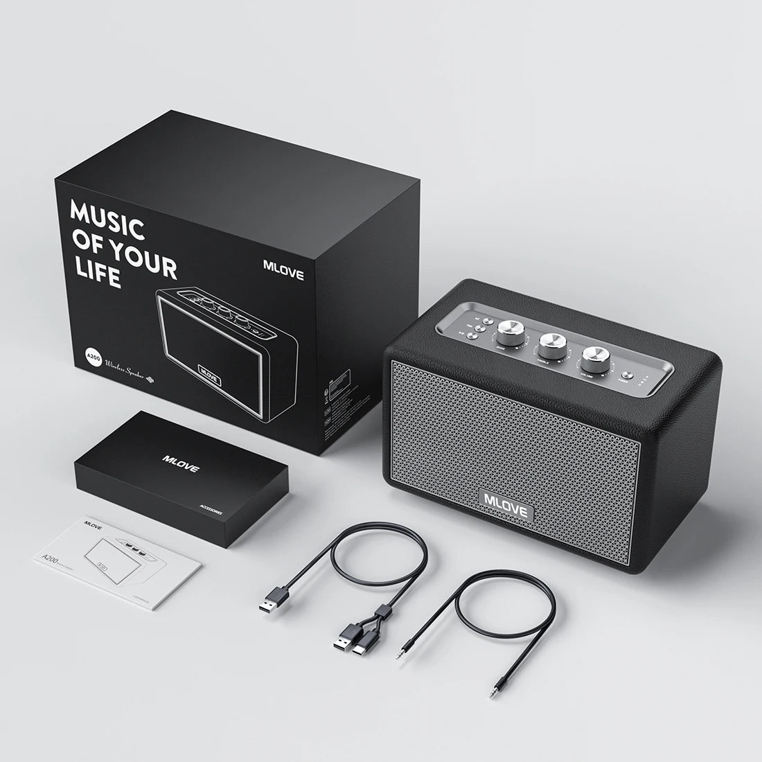 Mlove A200 Portable Bluetooth Speaker wireless bluetooth 5.3 speaker 24-Hour Play time, Elegant Retro Bluetooth Speaker